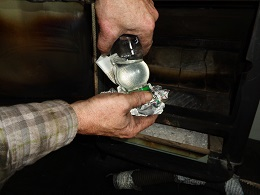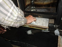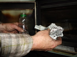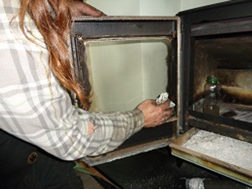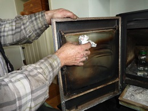 After setting your stove and before lighting it -lay a sheet of newspaper on the hearth under the door.Crumple a sheet for cleaning.