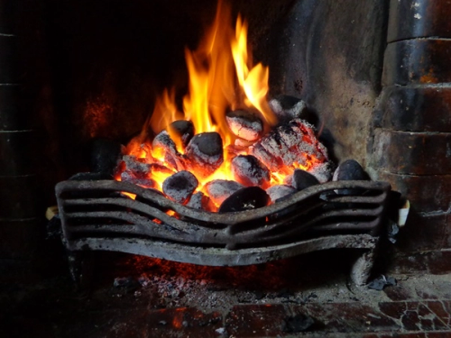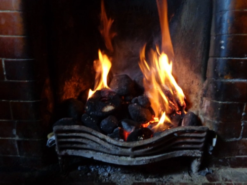 Two shovelful’s of fuel have been added to the center and rear of the fire.