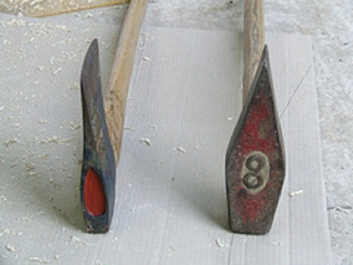 The axe on the left is a felling axe, it takes a lot of hard work to split with a felling axe!